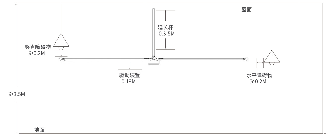 * 扇葉距離障礙物安全距離最小0.2m。